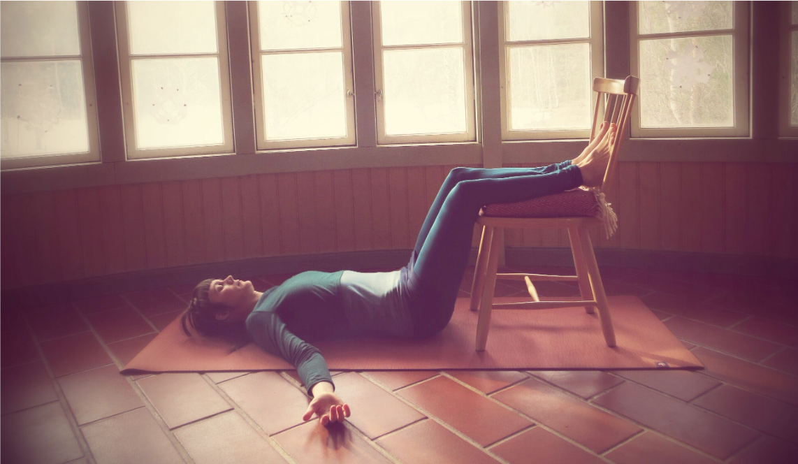 - Försök öva i en så bekväm kroppsposition som möjligt. En favorit är ryggliggande med underbenen på en stol, då slappnar hela ryggen av lättare. Om det inte känns bra; hitta ditt sätt att sitta eller ligga bekvämt.